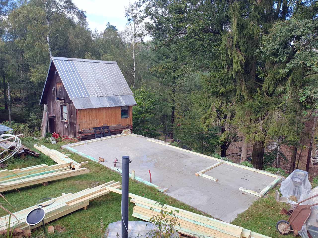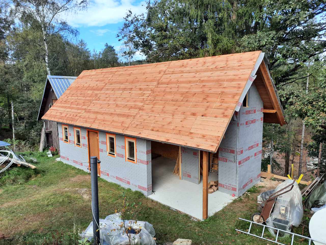 Dílna s fasádou z falcovaných prken