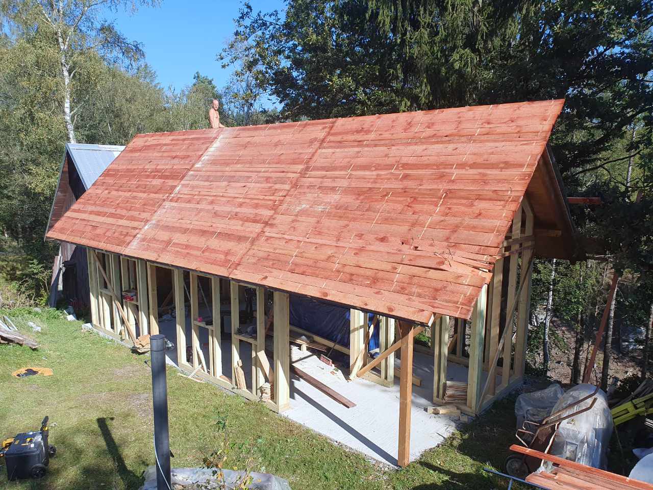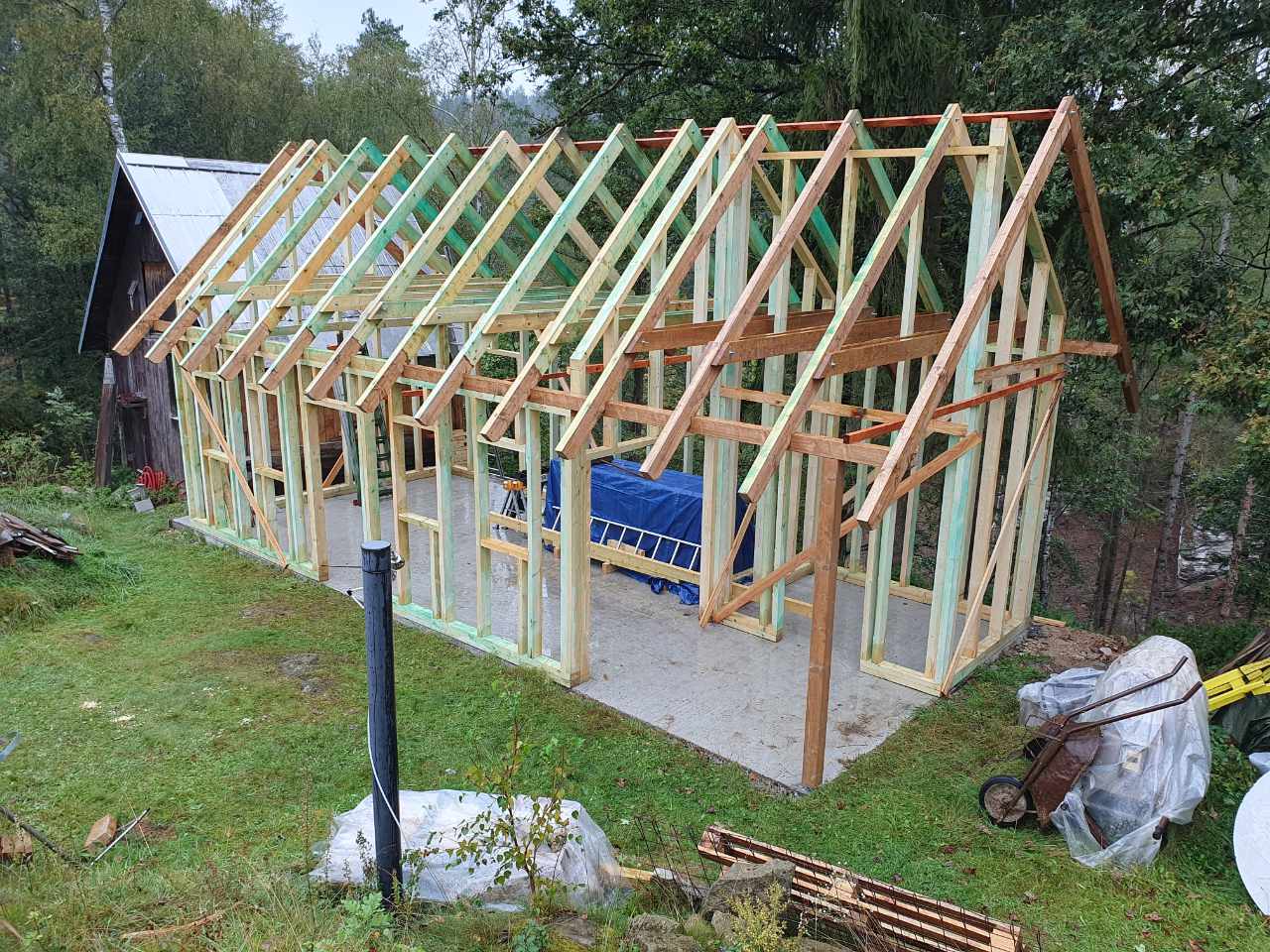 V Rynarticích jsme postavili dílnu s fasádou z falcovaných prken, ošetřenou kvalitním nátěrem Remmers pro dlouhou životnost a odolnost vůči povětrnostním vlivům.