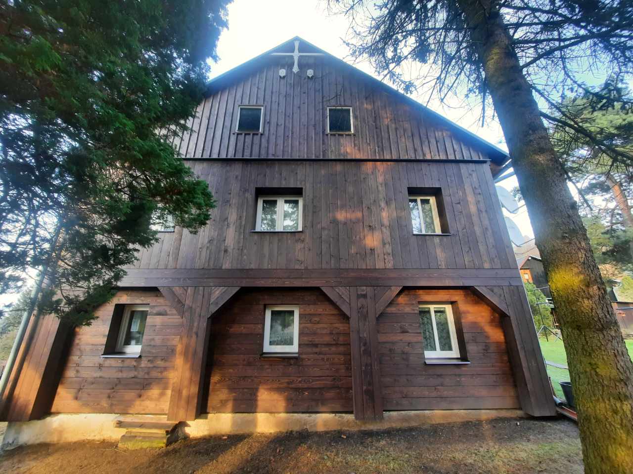 V Kamenickém Šenově jsme opravili roubený dům a provedli jeho zateplení s provětrávanou fasádou z falcovaných prken, natřenou lazurou Osmo. Výsledek spojuje tradiční kouzlo s moderní ochranou a dlouhou životností.