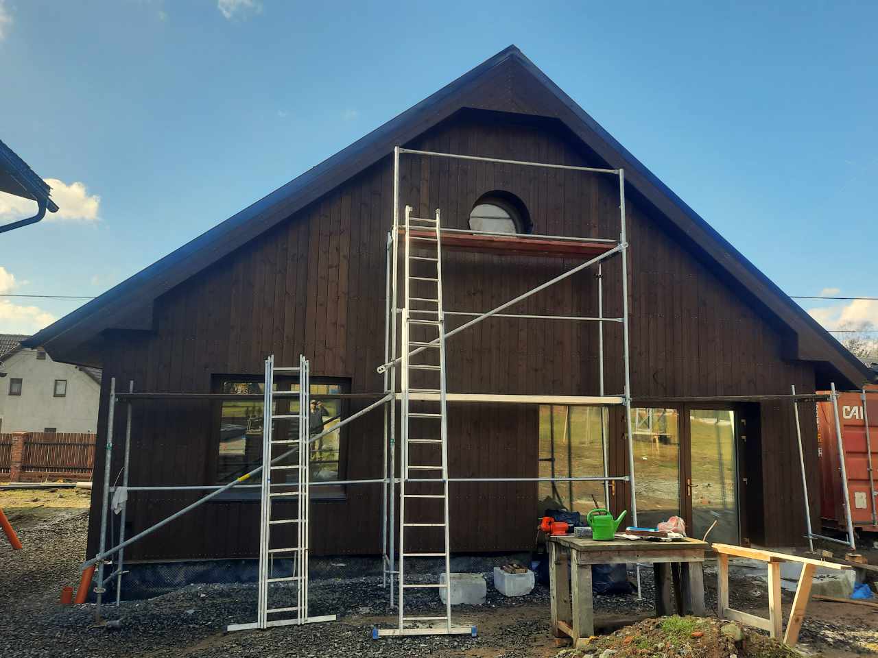 V Novém Oldřichově jsme zateplili zděnou dílnu a realizovali provětrávanou fasádu z palubek, natřených lazurou Osmo. Spojení zateplení a kvalitního dřeva přináší lepší tepelnou izolaci a elegantní vzhled stavby.