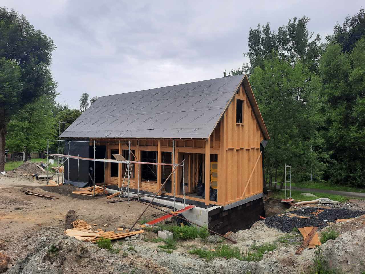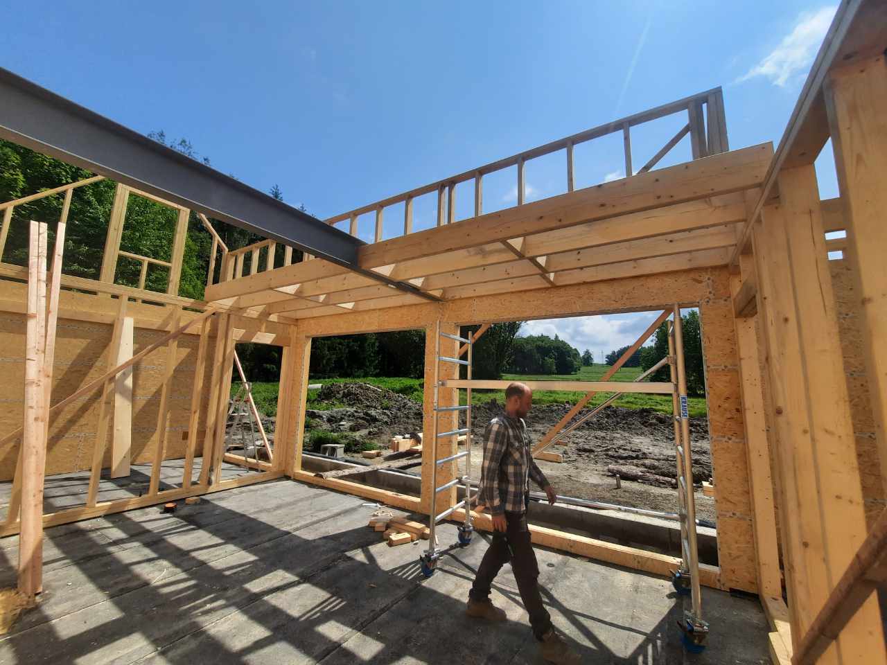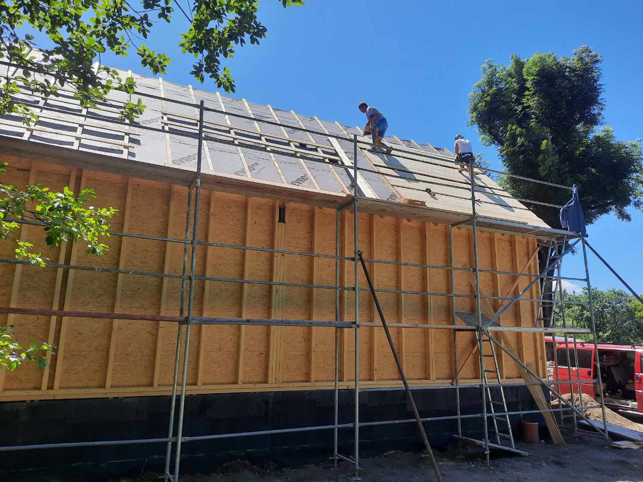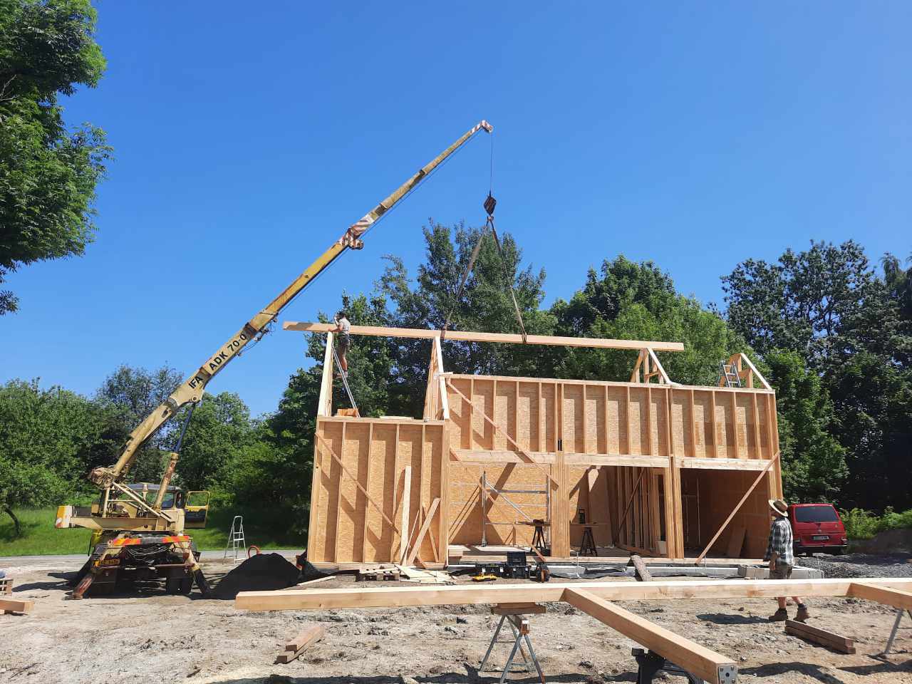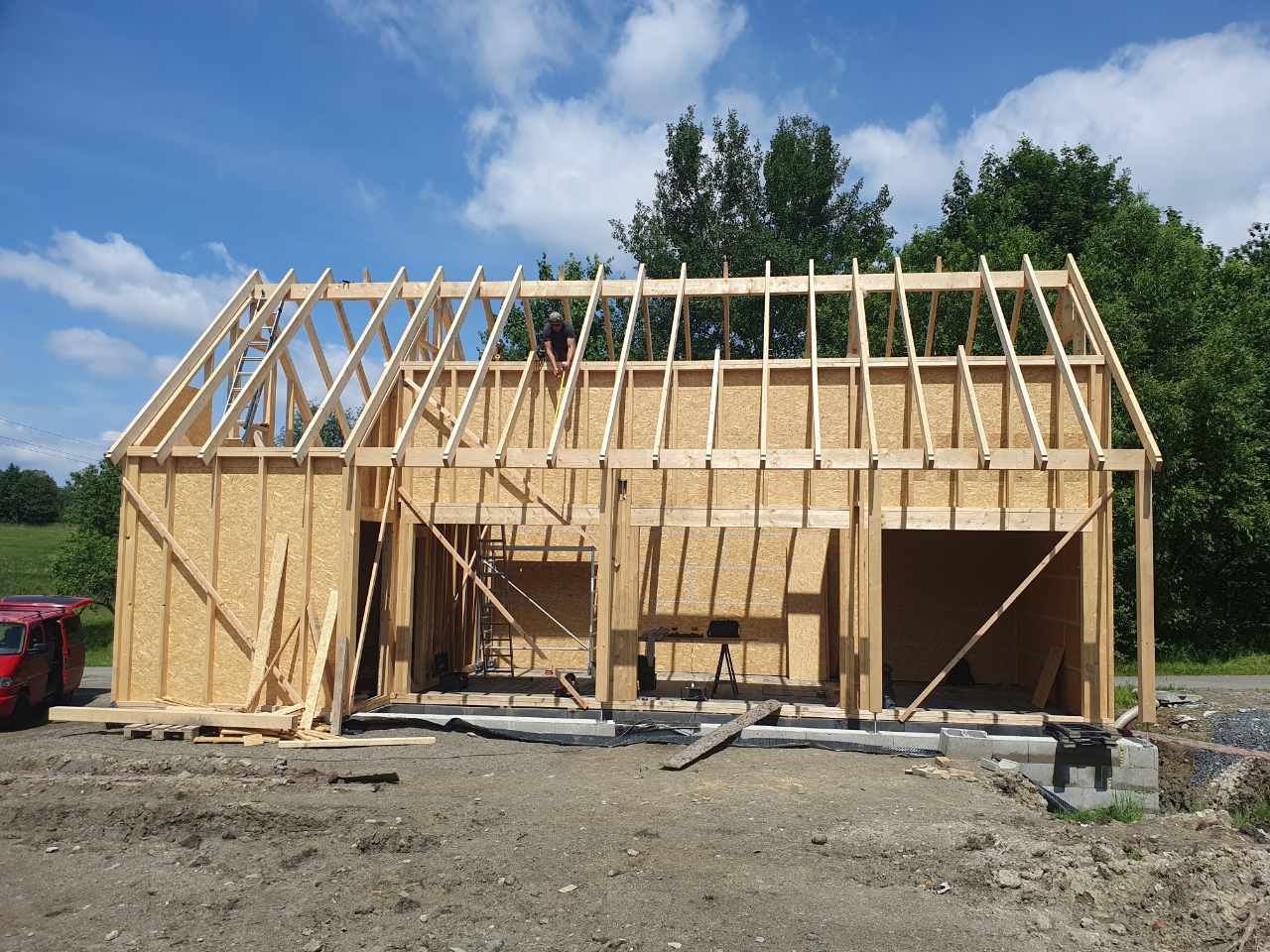 Výstavba dřevostavby s kompletní montáží nosné konstrukce a střechy