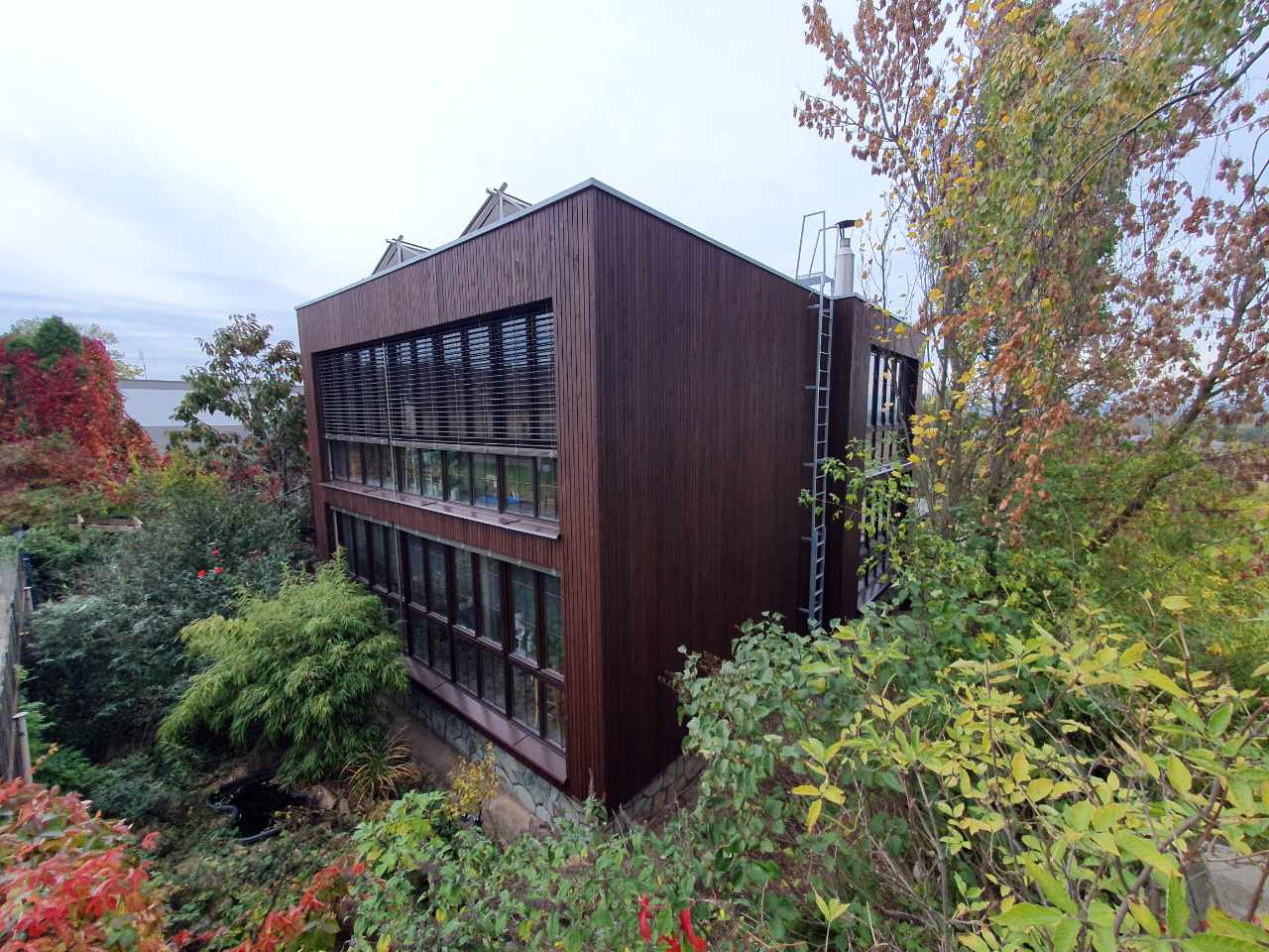 Tmavá dřevěná fasáda se svislým obkladem na rodinném domě